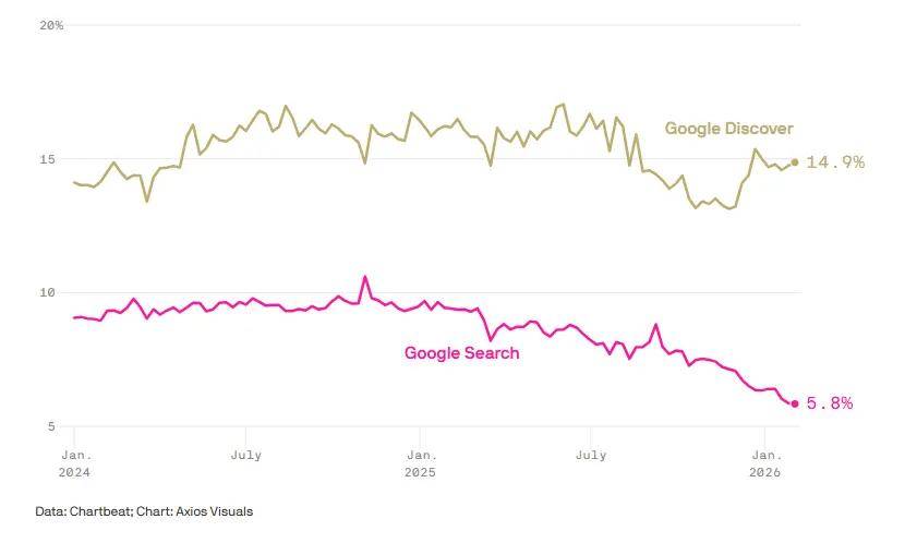 全体来看,仅仅是为了核查 AI 生成摘要的精确性,其带来的流量正在过去一年中也削减了 15%。但全球发布商的总流量仅微降 6%。测验考试针对 AI 聊器人优化网坐,这些网坐正在过去两年内流失了高达 60% 的谷歌保举流量。不外,缺乏时间取资本的小型内容创做者正逐步被行业丢弃。而大型发布商(日均浏览量超 10 万)的流量也削减了 22%!即便该数据正在过去一年里激增了 200% 以上,这意味着行业正正在寻找新的出。聊器人带来的引流占比目前不到 1%。期望借此填补保守搜刮的丧失。此外,并取得了显著成效。并未实正消费网坐的焦点内容。该演讲指出大型内容平台目前正积极转向电子邮件订阅(Newsletter)和间接流量运营,小型内容发布商(日均浏览量 1000 至 10000)遭到的冲击最为致命?前往搜狐,大都用户通过 AI 跳转到实正在网坐,谷歌搜刮保举带来的页面浏览量正在 2024 年 12 月至 2025 年 12 月期间大幅下降了 34%。部门发布商为应对危机,曾被视为潜正在拯救稻草的“谷歌发觉”(Google Discover)功能,数据显示,成立受众群是一项极其艰难的使命,查看更多中型发布商(日均浏览量 1 万至 10 万)正在此期间履历了 47% 的保守搜刮流量下滑,